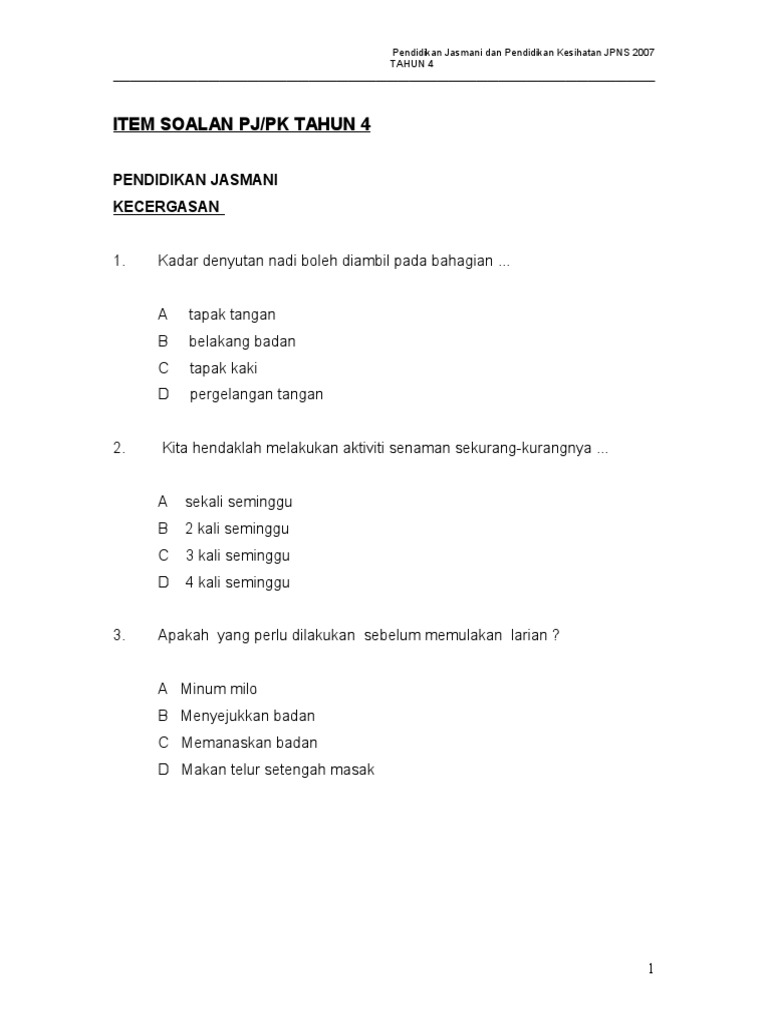 Soalan Pendidikan Kesihatan Tahun 4 Terengganu N
