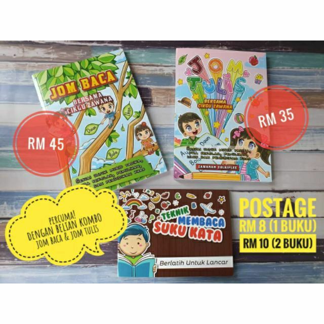 Combo Buku Jom Baca Jom Tulis Oleh Cikgu Zawana Percuma Buku Teknik Membaca Suku Kata Shopee Malaysia