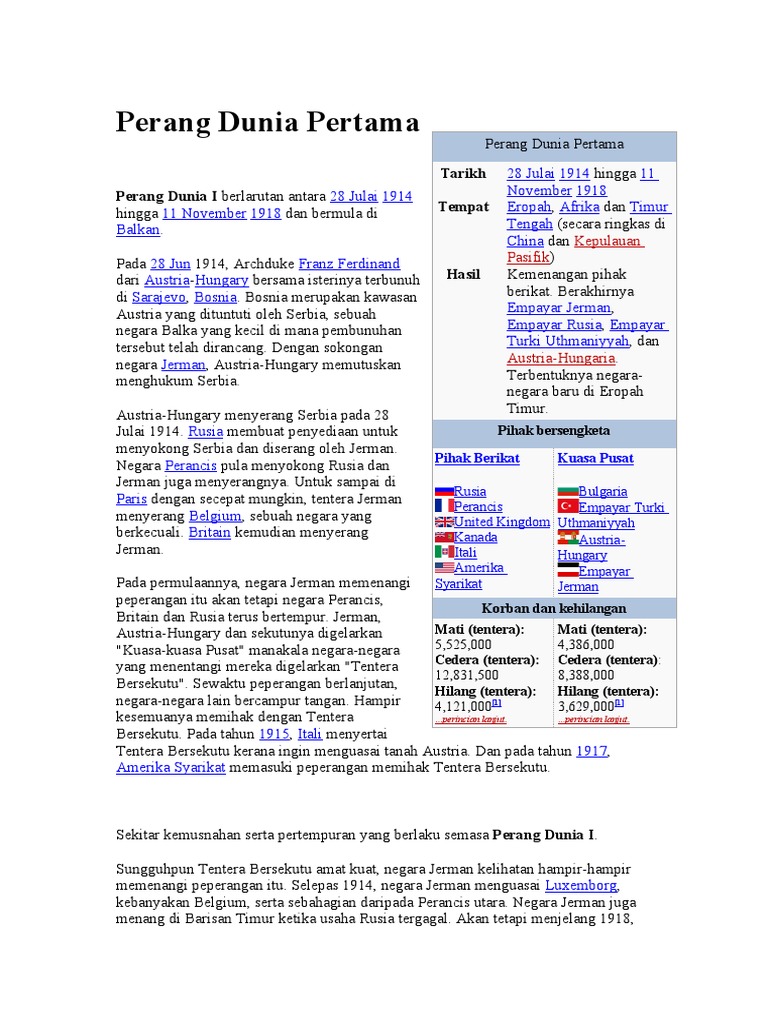 Faktor Pencetus Perang Dunia Pertama Dan Kesan2