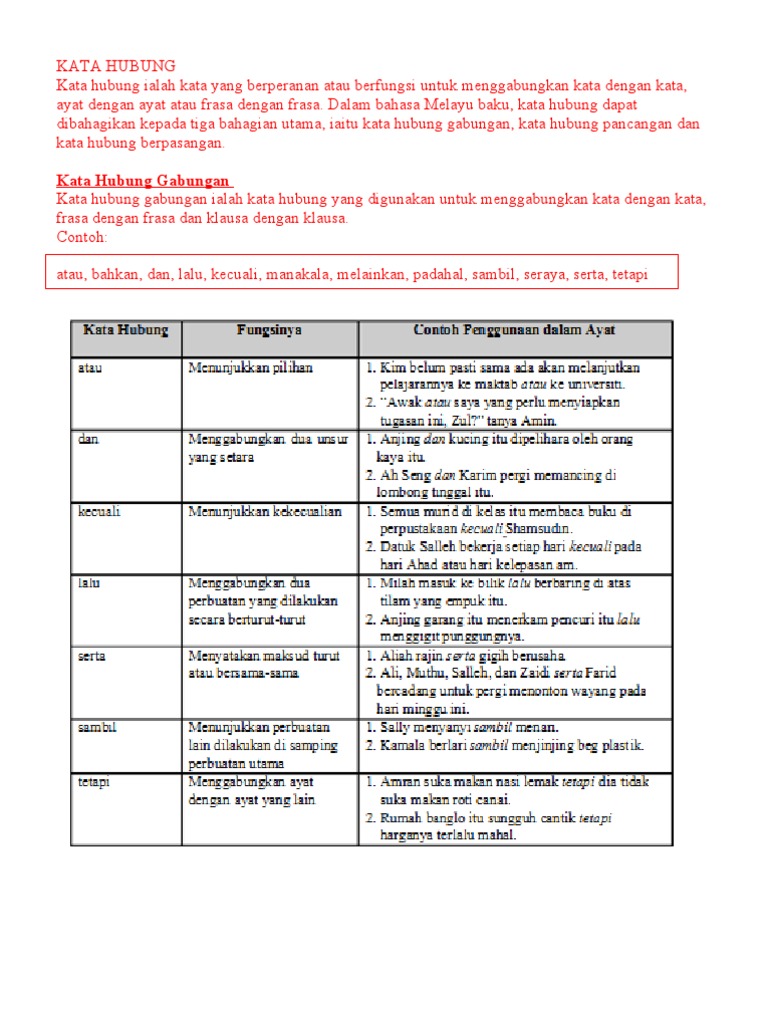 Bahasa Melayu Kefahaman Tahun 4 Kata Hubung