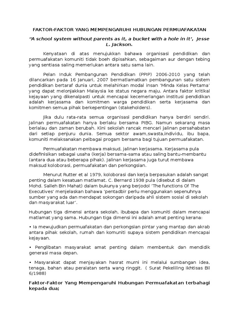 Faktor Faktor Yang Mempengaruhi Hubungan Permuafakata