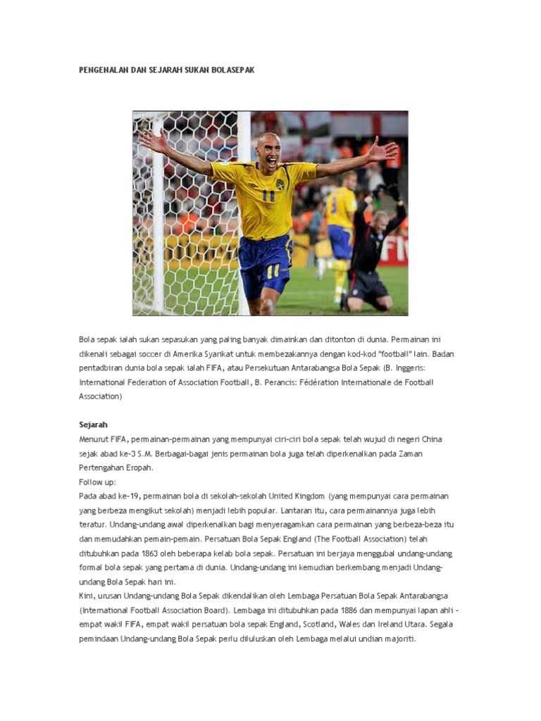 Pengenalan Dan Sejarah Sukan Bolasepak