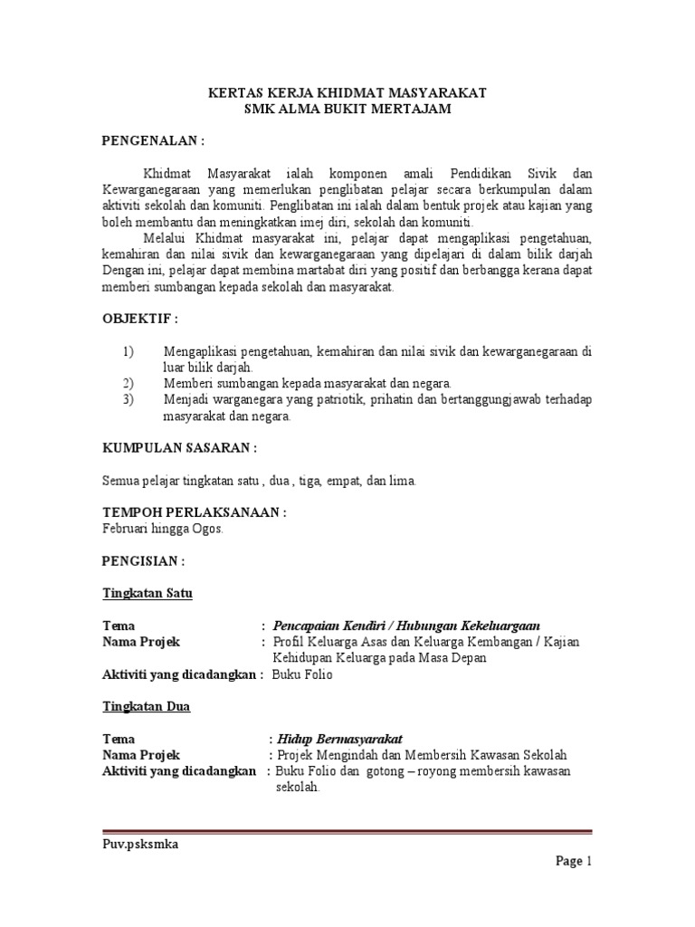 Contoh Kertas Cadangan Khidmat Masyarakat