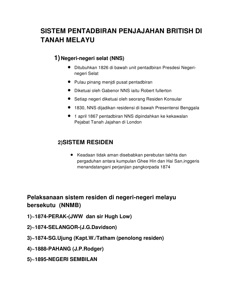 Sistem Pentadbiran Penjajahan British Di Tanah Melayu