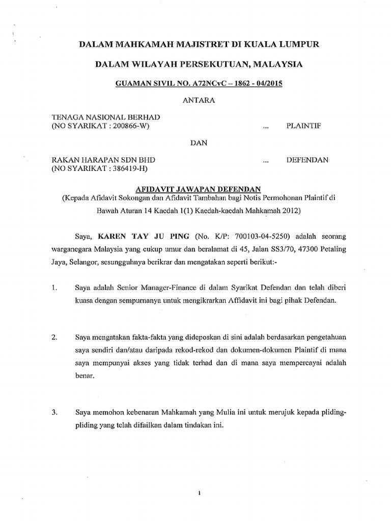 Afidavit Jawapan Defendan 9 Oct 2015 Sbw