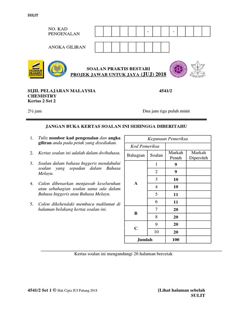 Soalan Percubaan Spm Kimia Pahang 2018 Set 1 Gurubesar My