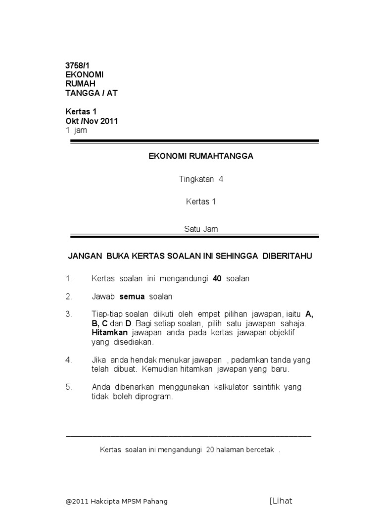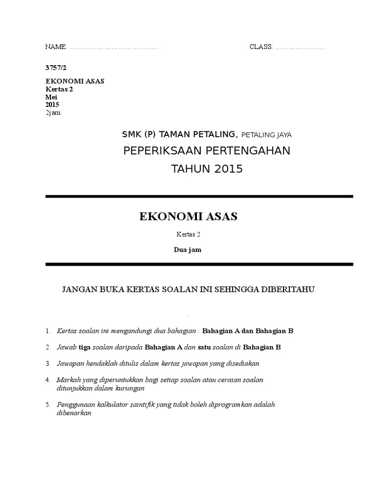 Contoh Soalan Peperiksaan Akhir Tahun Ekonomi Asas Tingkatan 4 J Kosong W