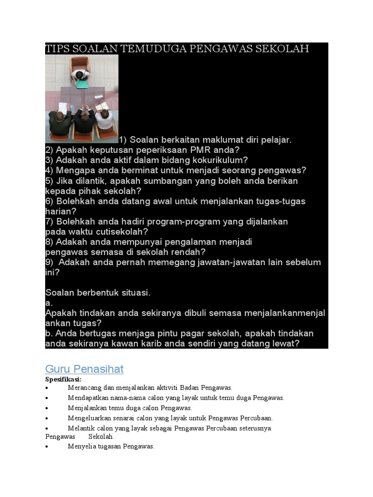 Tips Soalan Temuduga Pengawas Sekolah Azhan Co