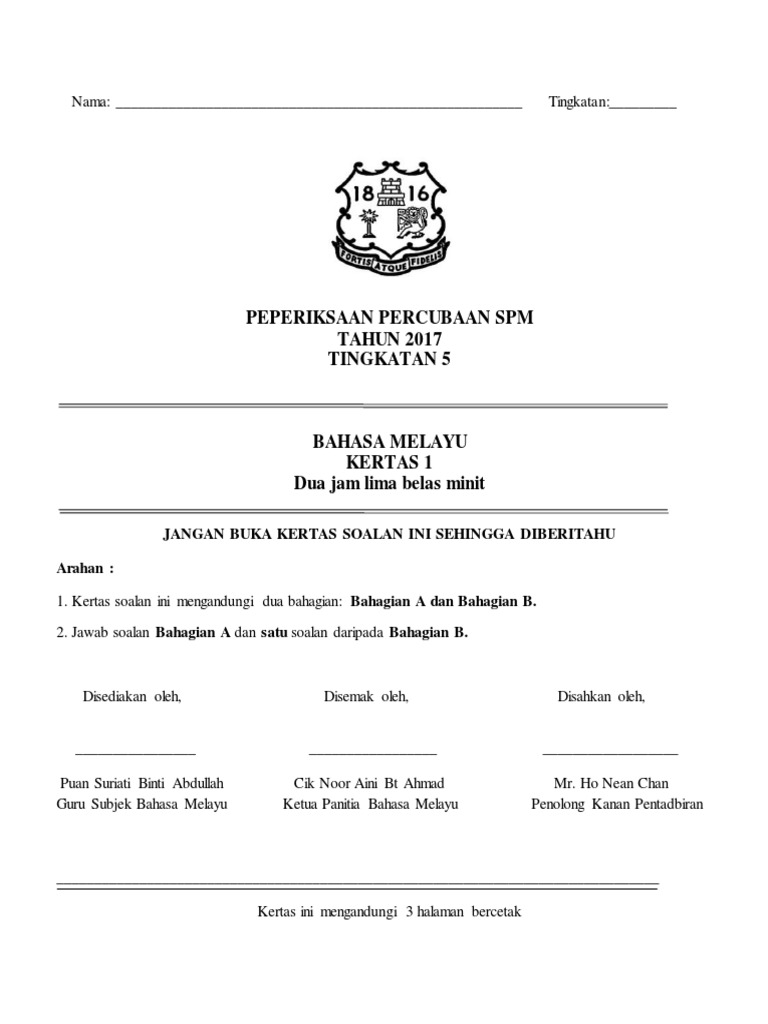 Soalan Percubaan Spm Bahasa Melayu Pulau Pinang 2019 Gurubesar My