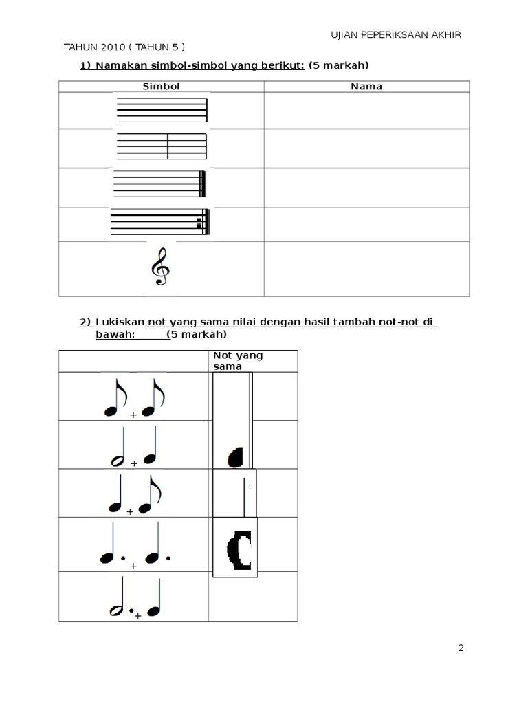 Kertas Soalan Ujian Pendidikan Muzik Tahun 4 Kssr Cute766