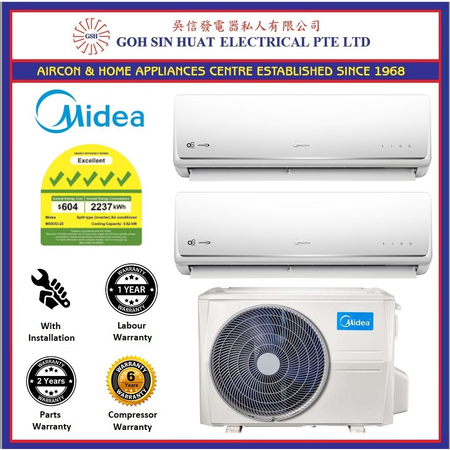 New Model Midea 5 Ticks System 2 Air Con Air Conditioner Ms5od 25 And Smkp 12 X 1 And Smkp 18 X 1 New Installation Shopee Singapore
