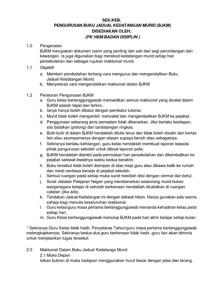Pekeliling Sistem Kehadiran Murid Bil 1 Tahun 2019 Pendidik2u