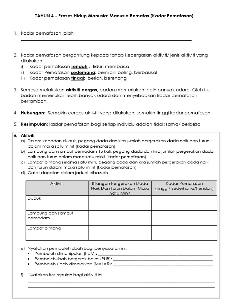Apa Maksud Kadar Pernafasan Manusia Jawapan