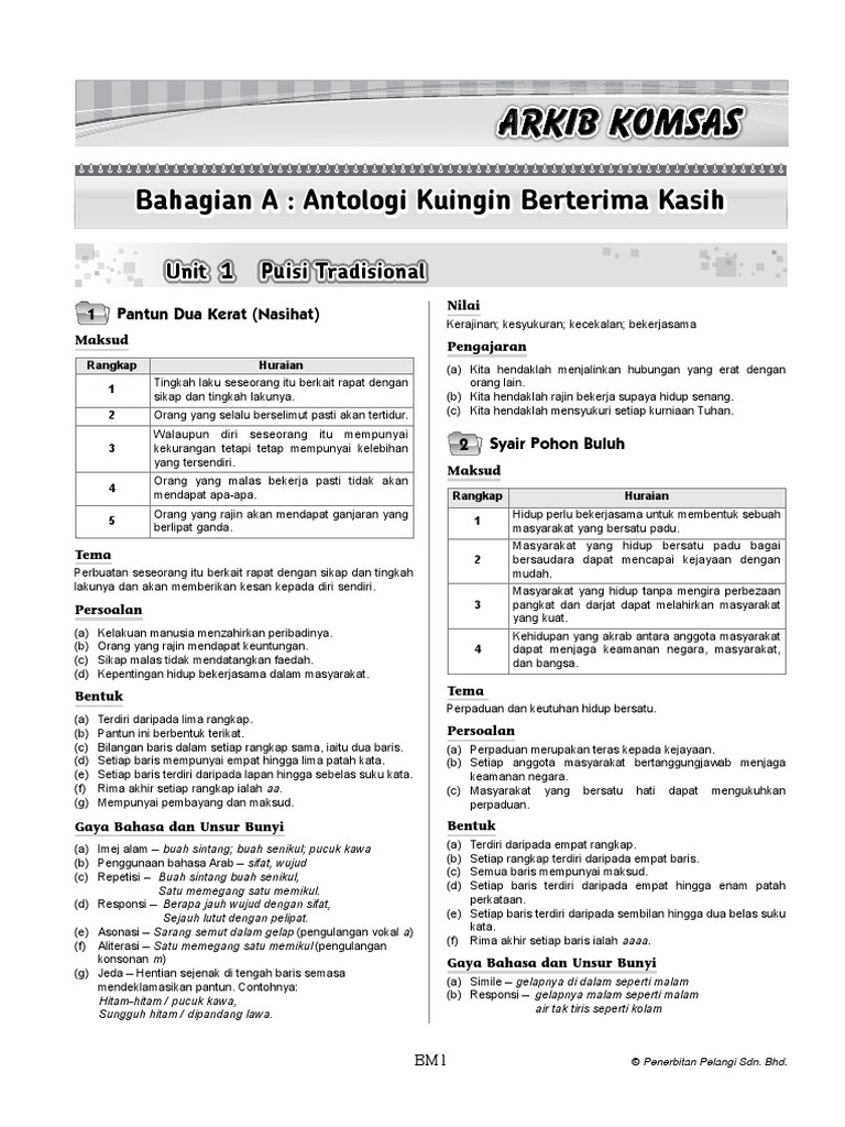 Tingkatan 1 Kupasan Kajian Komsas Kendiri Antologi Kuingin Berterima Kasih Dan Novel Destinasi Impian