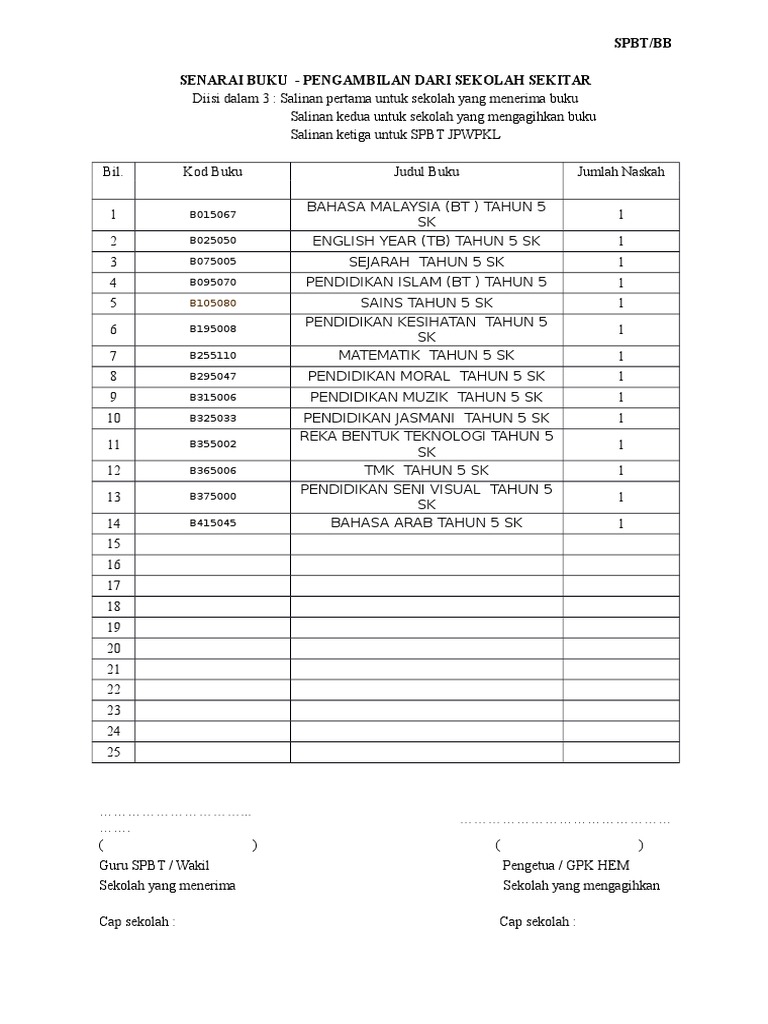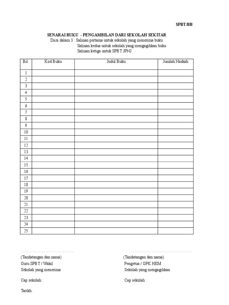 Borang Pengambilan Buku Dari Sekolah Sekitar