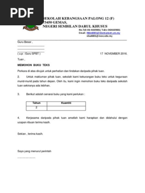 Surat Mohon Buku Teks Sekolah Lain
