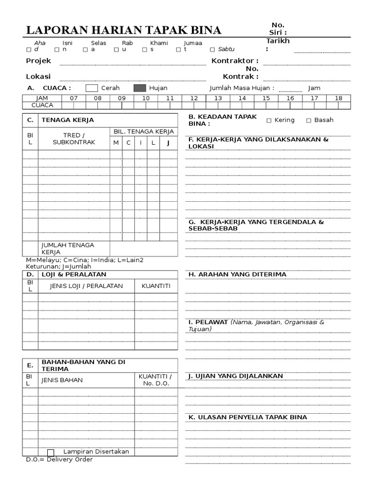 188858036 Borang Laporan Harian Tapak Bina Docx Document