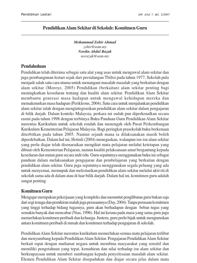 Pendidikan Alam Sekitar Di Sekolah Komitmen Guru Mohammad Zohir Ahmad Nordin Abdul Razak