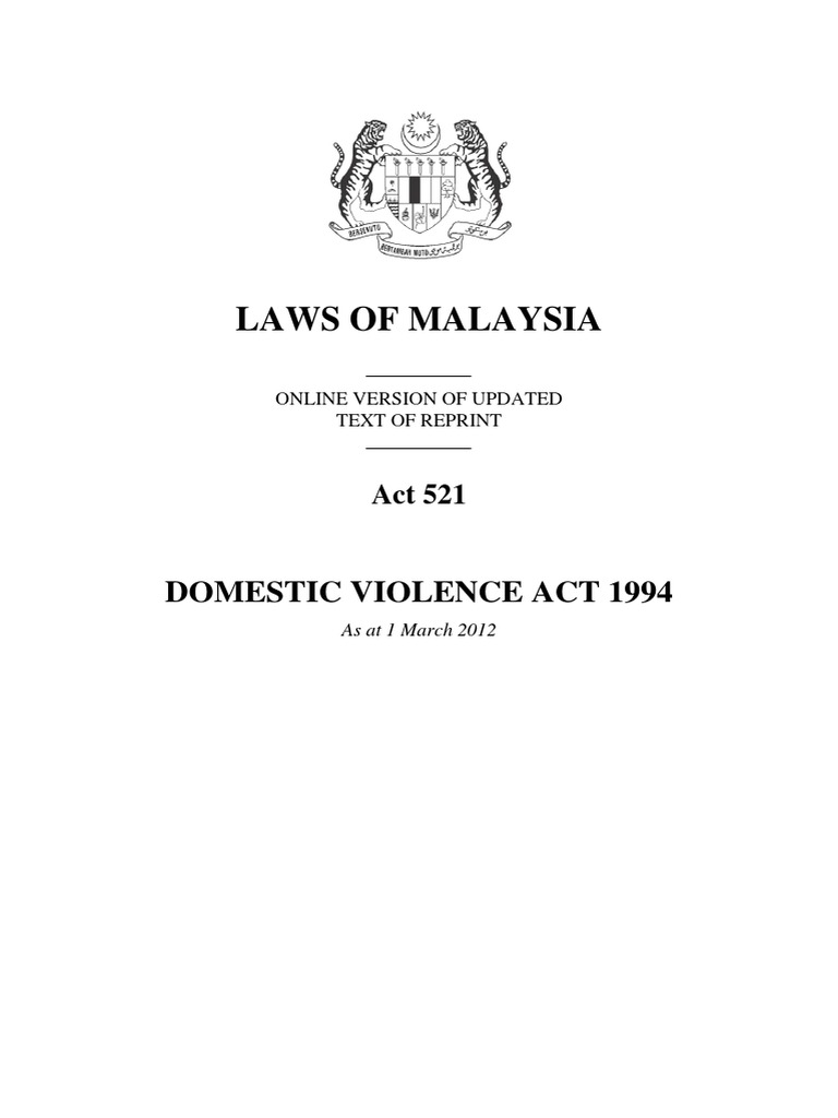 Act 521 Domestic Violence Act 1994 Of Malaysia Restraining Order Damages
