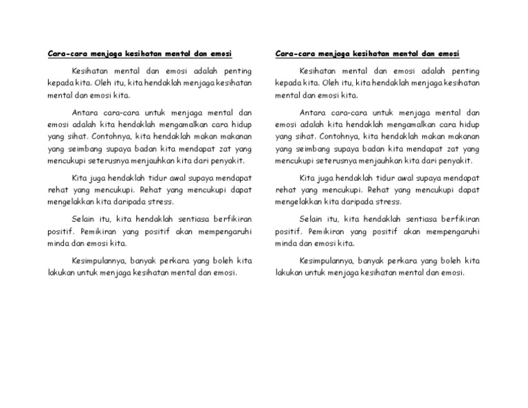 Karangan Cara Cara Menjaga Kesihatan Mental Dan Emosi