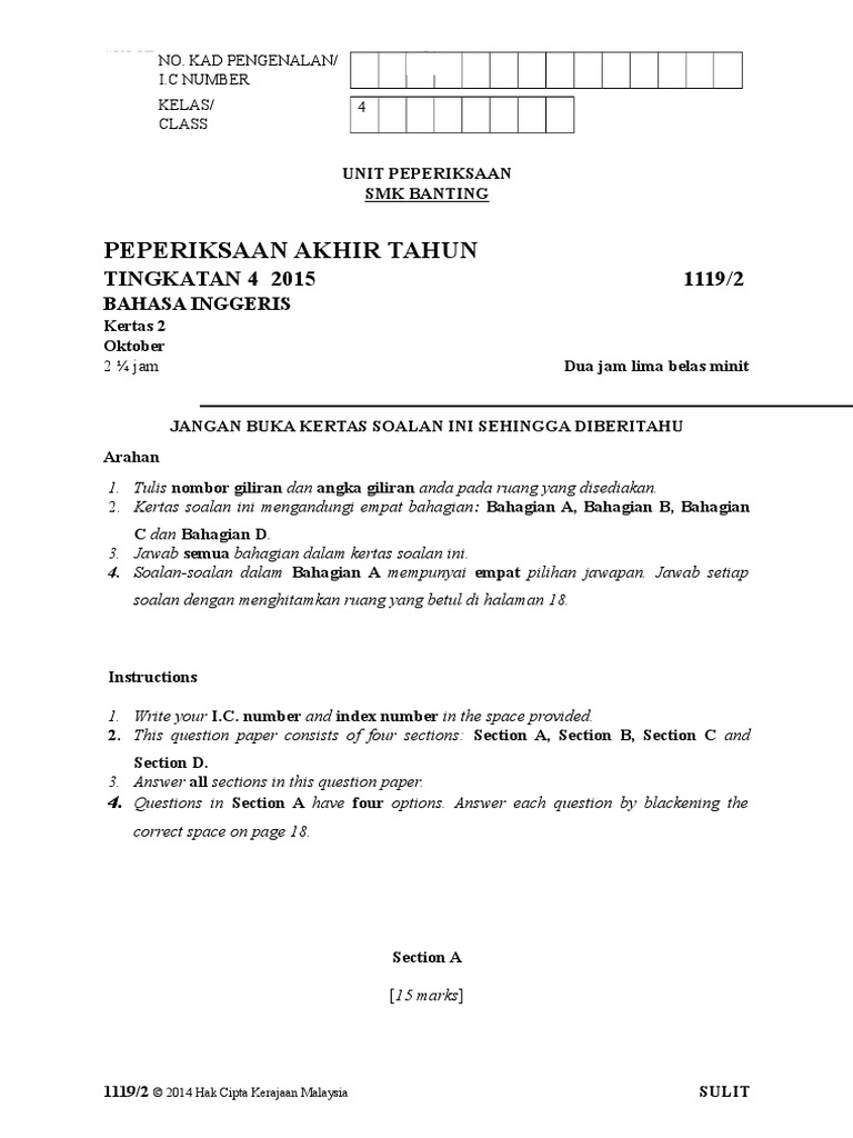 Kertas Peperiksaan Akhir Tahun Tingkatan 4 Jawapan Dalam English