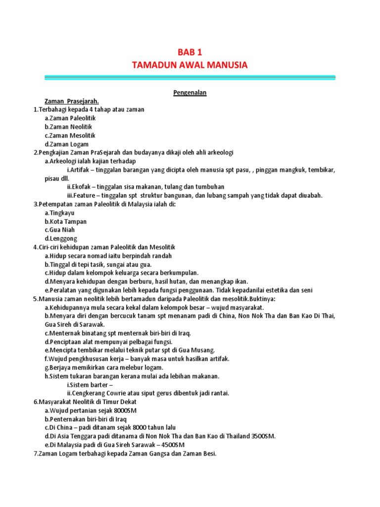 Bab 1 Tamadun Awal Manusia Pengenalan Zaman Prasejarah