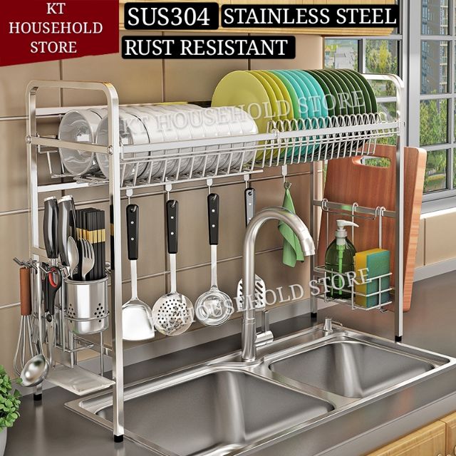 Ready Stock Msia Stainless Steel Dish Racks Kitchen Sink Rack Storage Rak Pinggan Shopee Singapore