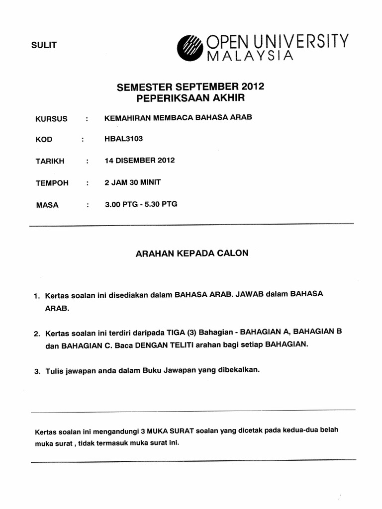 Contoh Soalan Objektif Bahasa Arab Malacca S