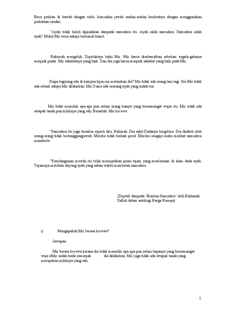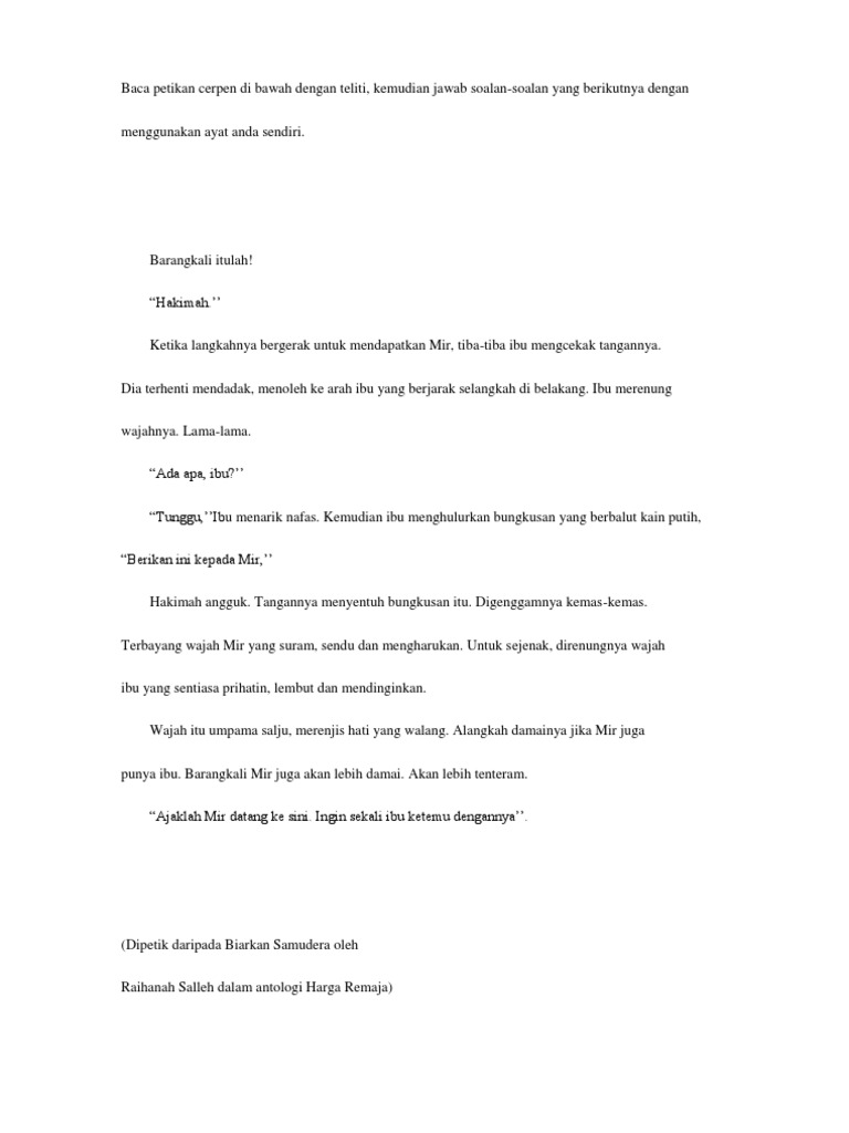 Soalan Dan Jawapan Cerpen Biarkan Samudera