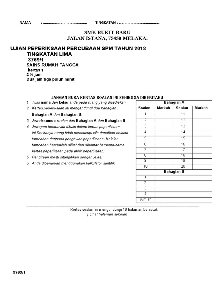 Format Baharu Soalan Spm Bagi Sains Rumah Tangga Mulai Tahun 2018 Bumi Gemilang