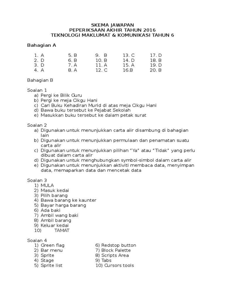Skema Jawapan Peperiksaan Akhir Tahun 2016 Teknologi Maklumat Komunikasi Tahun 6 Bahagian A