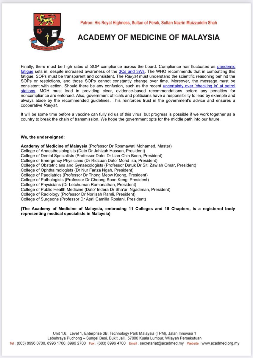 Fahmi Fadzil On Twitter Academy Of Medicine Of Malaysia Calls On The Government To 1 Explain The Science 2 Share The Data 3 Lift The Cmco These Are Your Distinguished Colleagues In