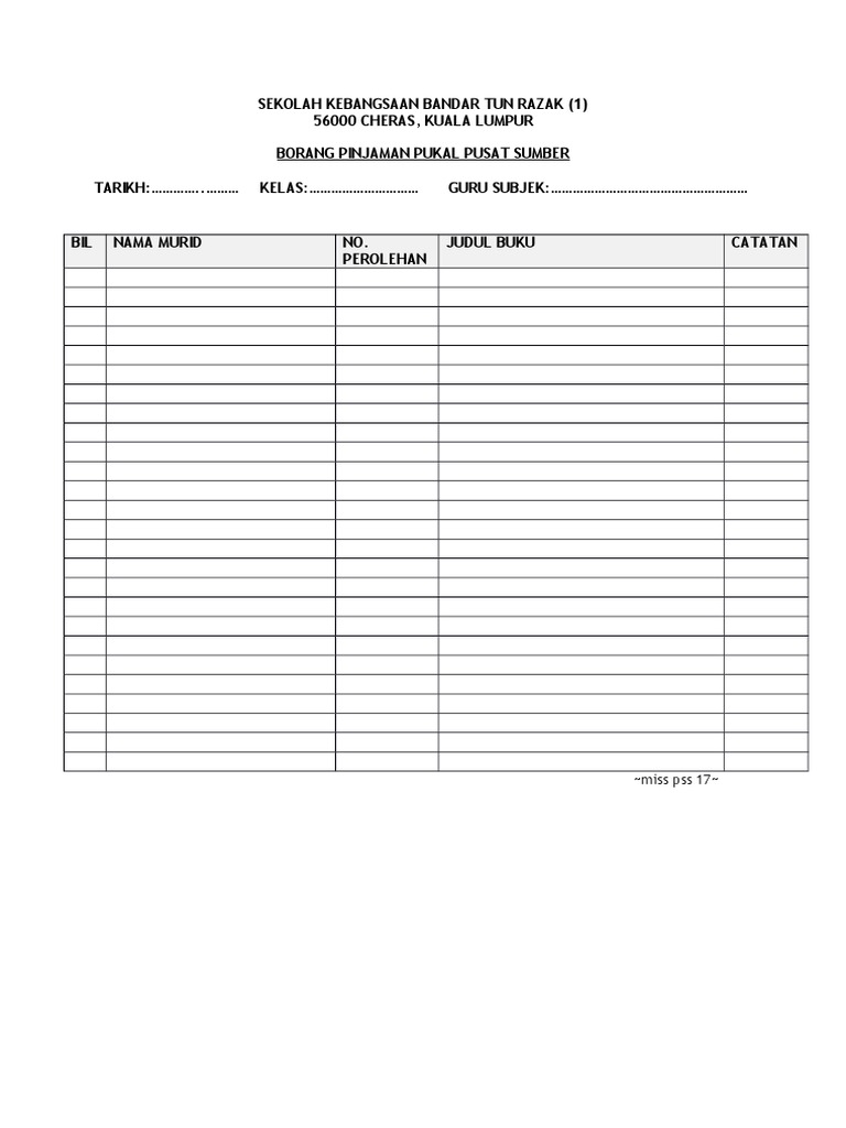 Borang Pss 21 Pinjaman Bahan Cetak Guru