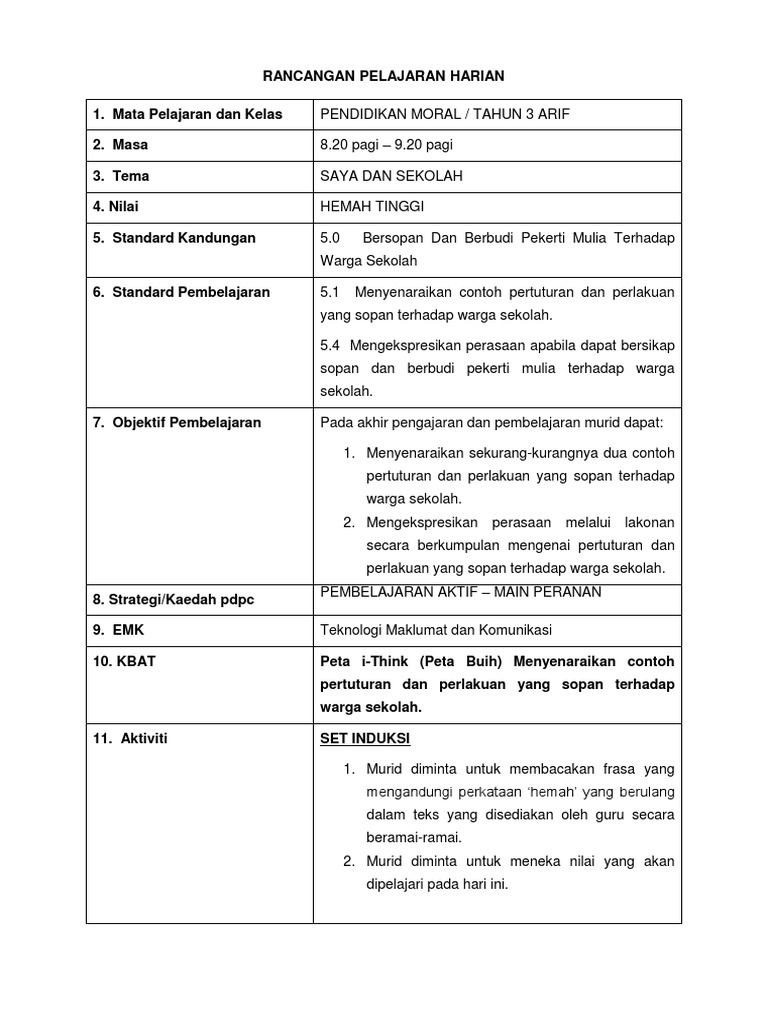 Murid Berhemah Rph Pendidikan Moral Tahun 3 Sumber Pendidikan