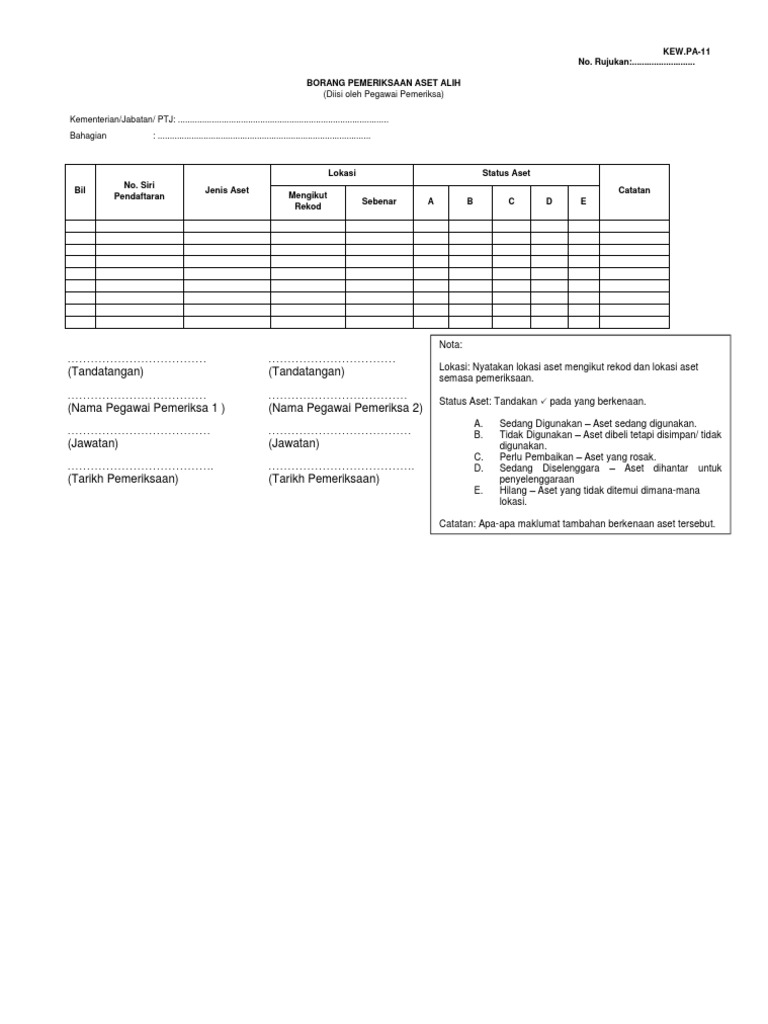 Borang Pemeriksaan Aset Alih Baru Kewpa 11