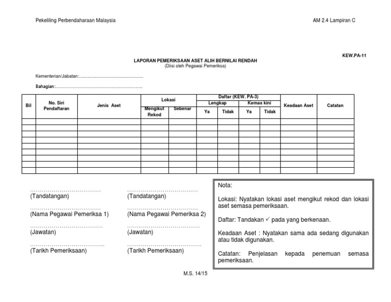 Buku Daftar Aset Kew Pa 11 Aset Laporan Pemeriksaan Inventori Diisi Oleh Pegawai Pemeriksa Irulrabbit