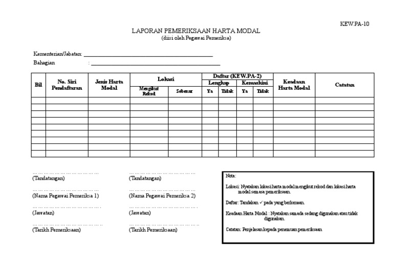 Kew 1 Pa 10 Laporan Pemeriksaan Harta Modal