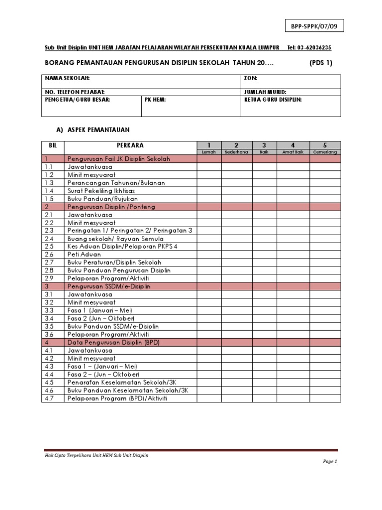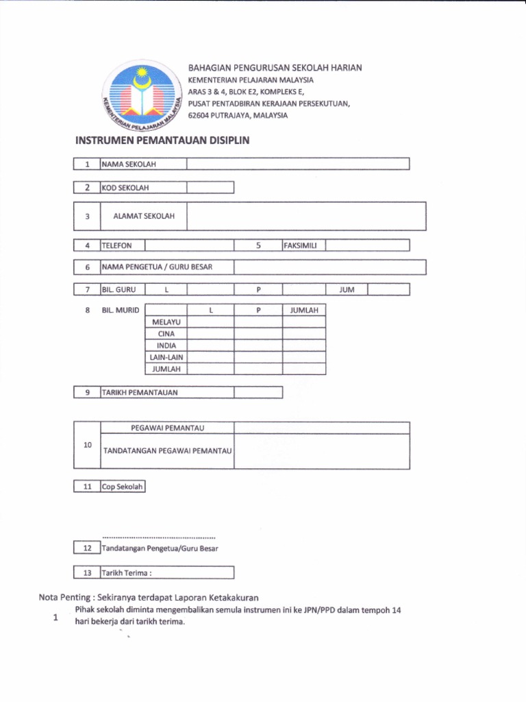 Borang Instrumen Pemantauan Disiplin Xls Document