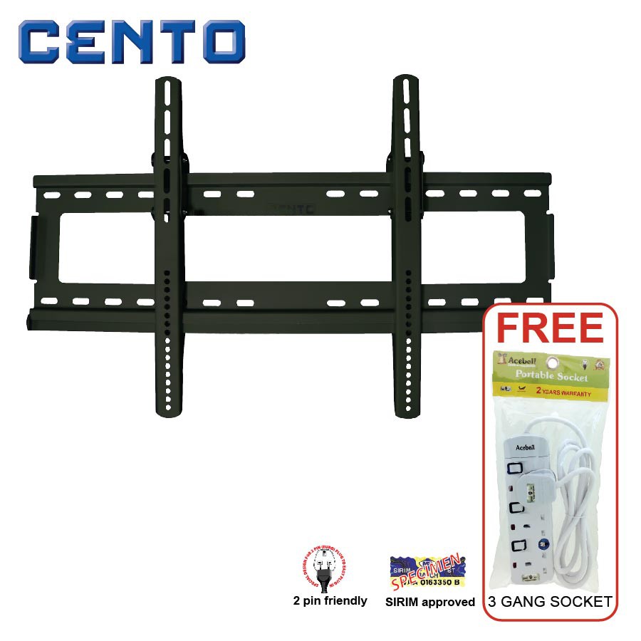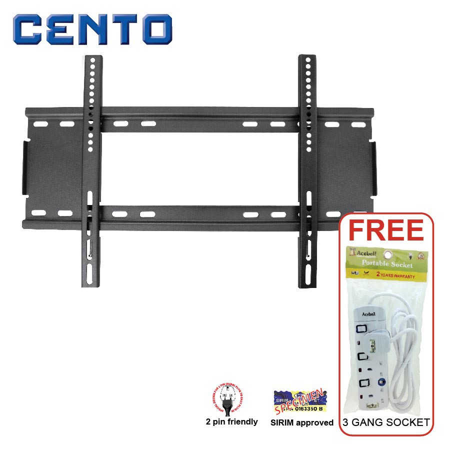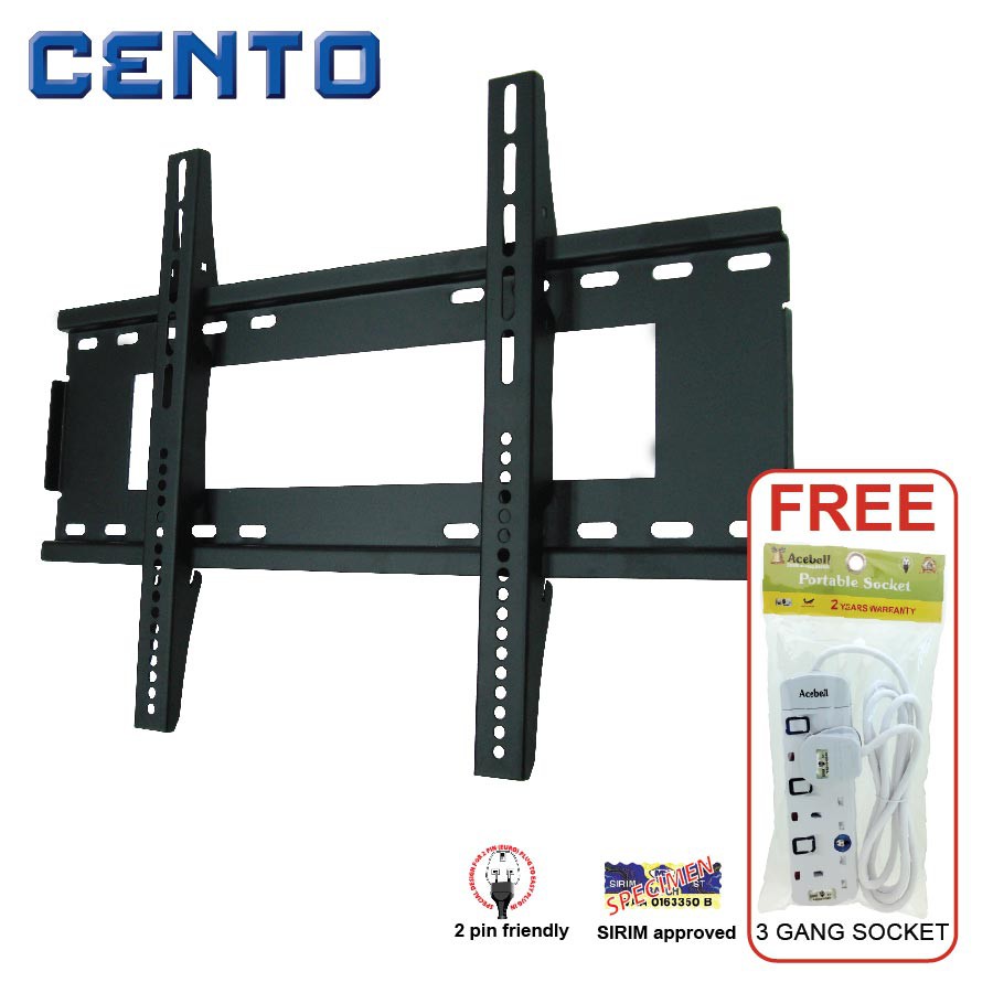 Cento Led Lcd Tv Bracket Fixed Motion Wall Mount For Tv 28 42 Inch 100 High Quality Malaysia Products 2mm Ultra Strong Stell Lcd2642 Free 3gang Socket Worth Rm19 Lazada