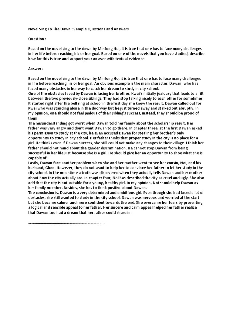 Novel Sing To The Dawn Sample Questions And Answers 4