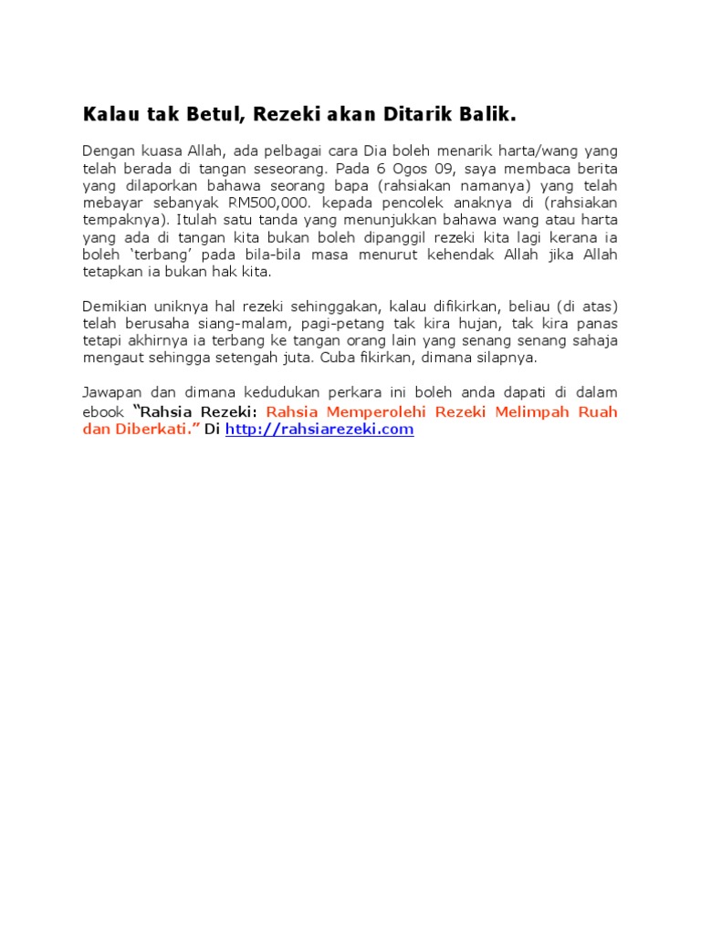 Kalau Tak Betul Rezeki Akan Ditarik Balik