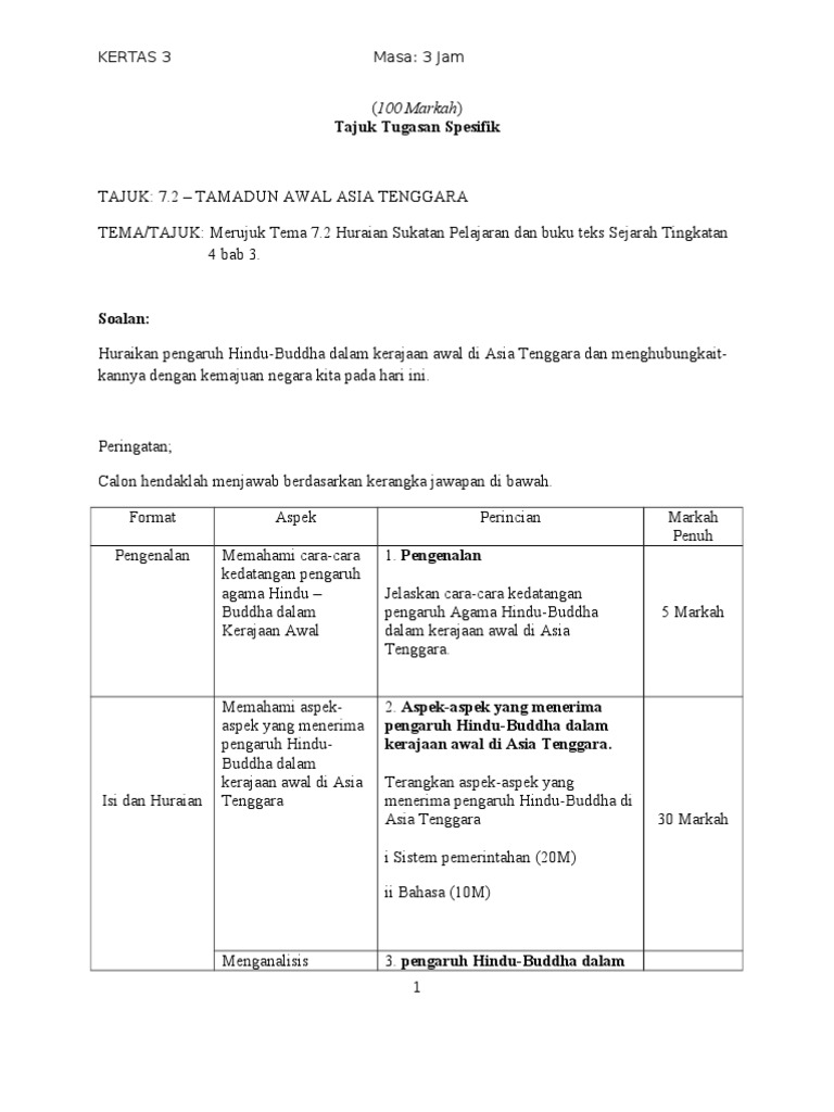 Skema Jawapan Kertas 3 Tamadun Awal Asia Tenggara