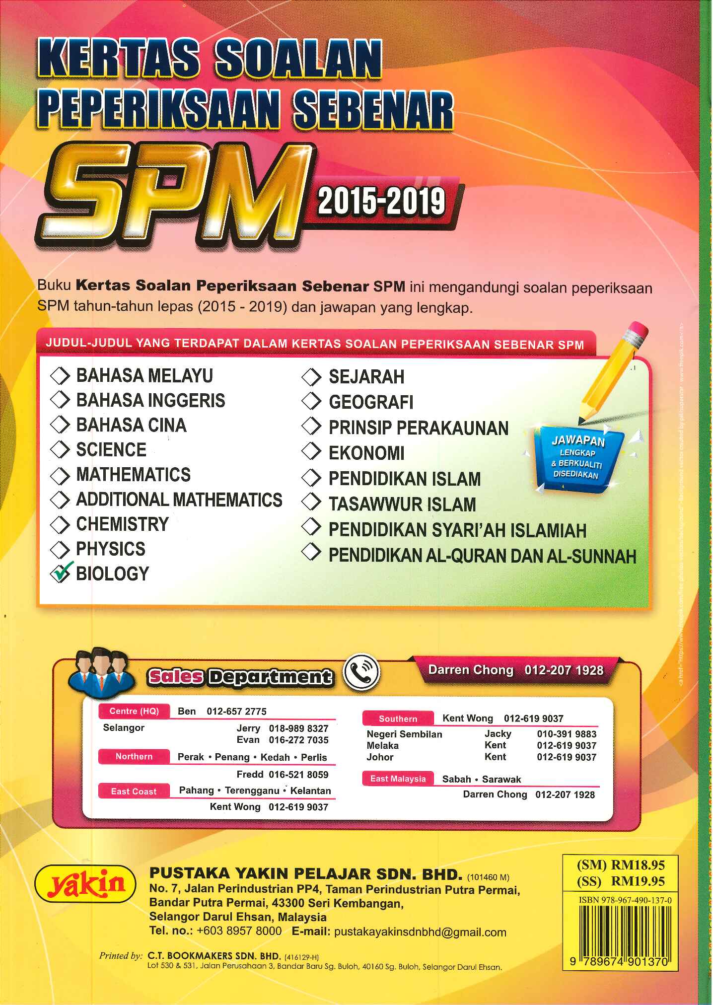 Kertas Soalan Peperiksaan Sebenar Spm Biology 2015 2019 Shopee Singapore