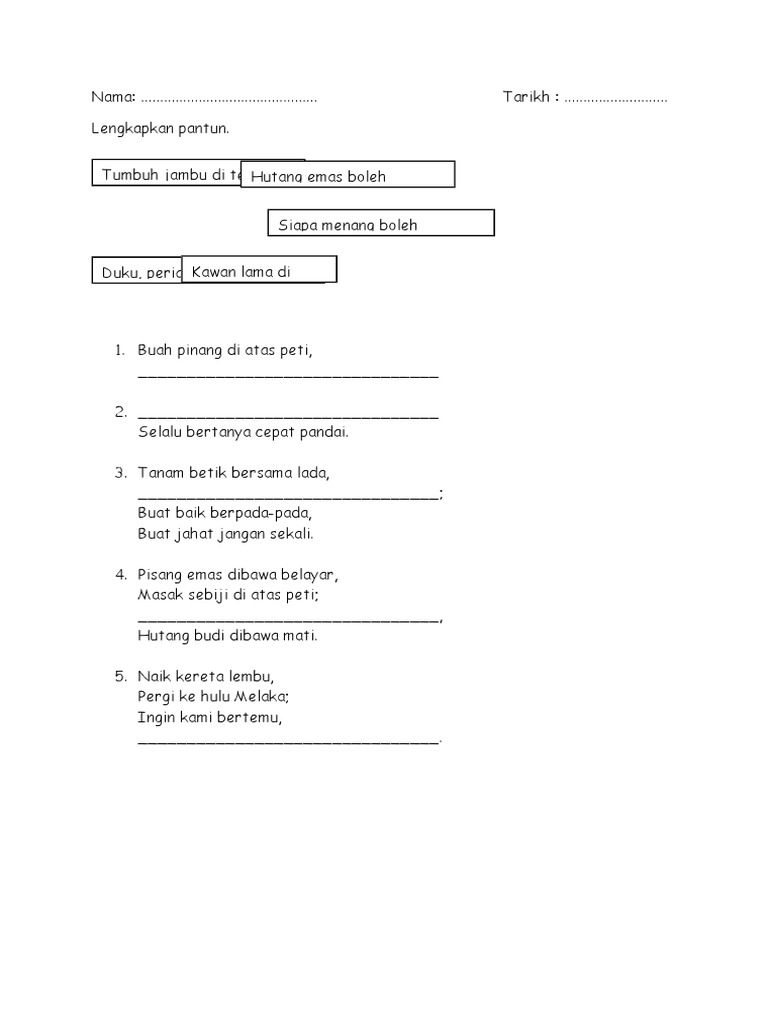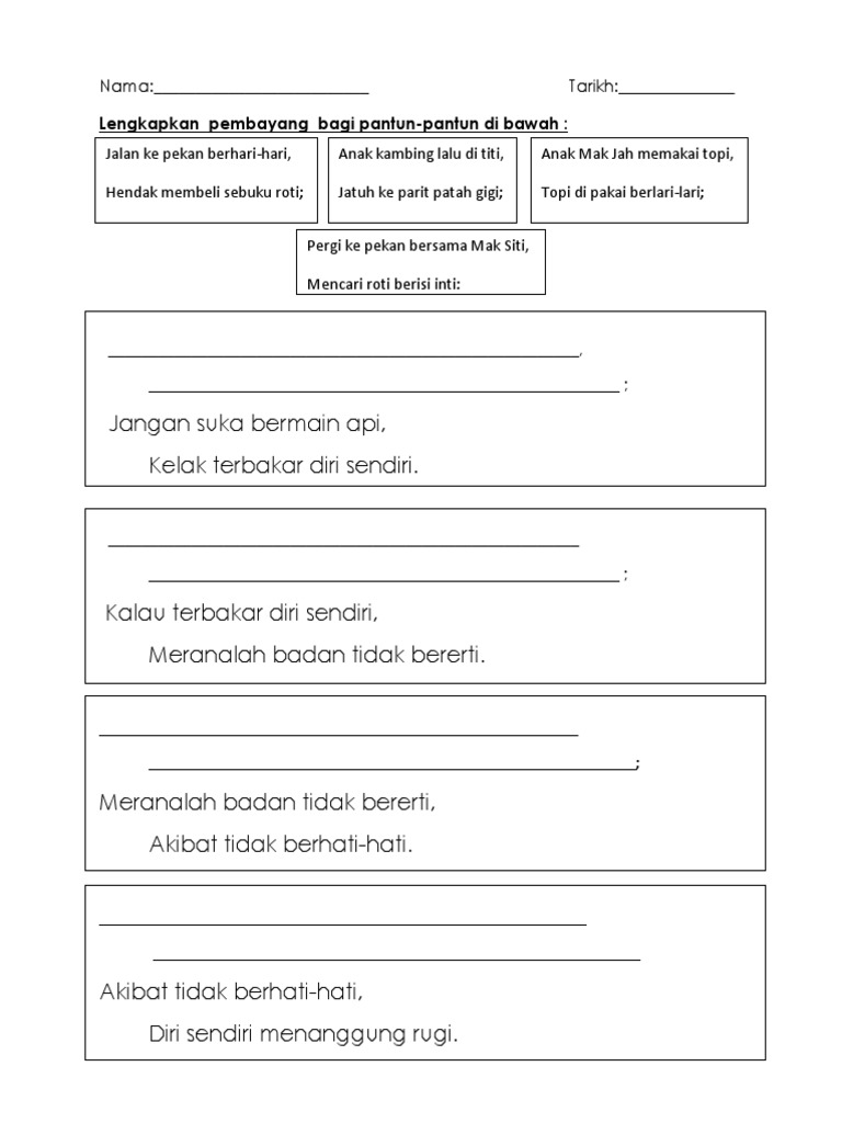 Pantun Tahun 1 Cikgu Guna Worksheet