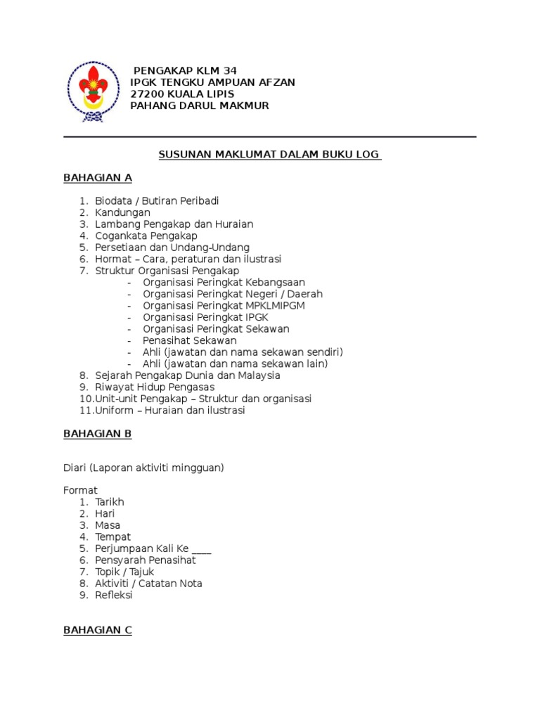 Format Buku Log Pengakap Klm 34 Docx