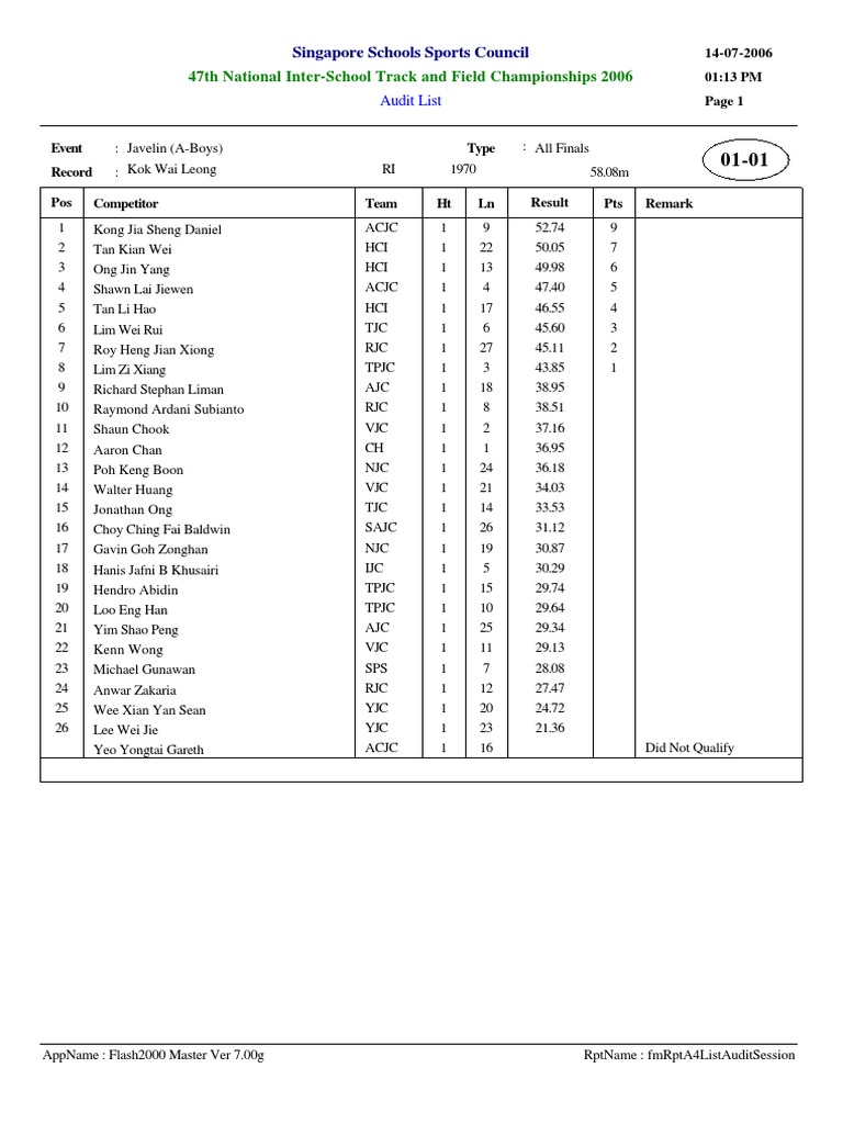 2006 National School Sport Of Athletics Athletics