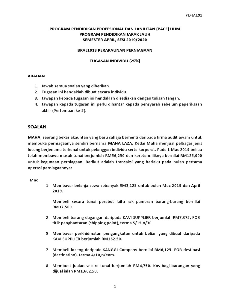 Soalan Dan Jawapan Perakaunan Perniagaan Pjj Ja191