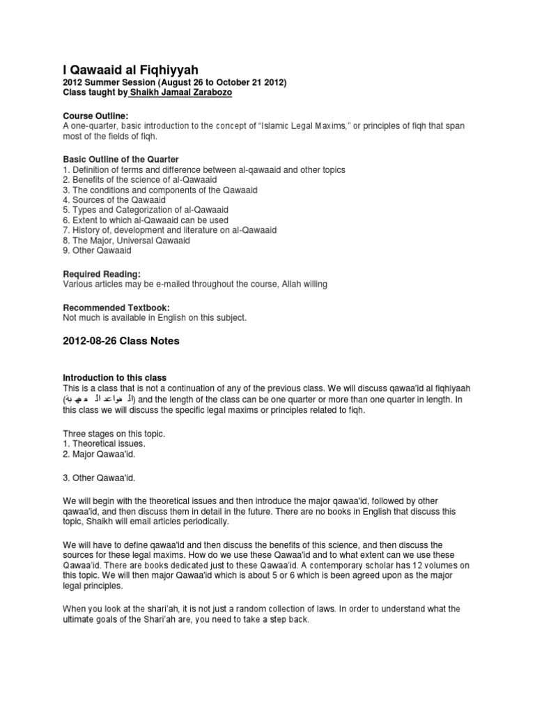 Pdf Islamic Legal Maxims Qawaid Fiqhiyyah Teaching And Learning With Ar