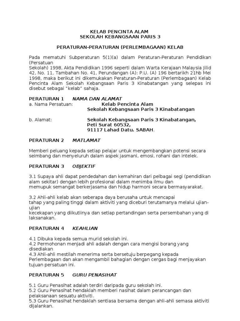 Doc Perlembagaan Kelab Pencinta Alam Sekitar Hazel Eklund Academia Edu