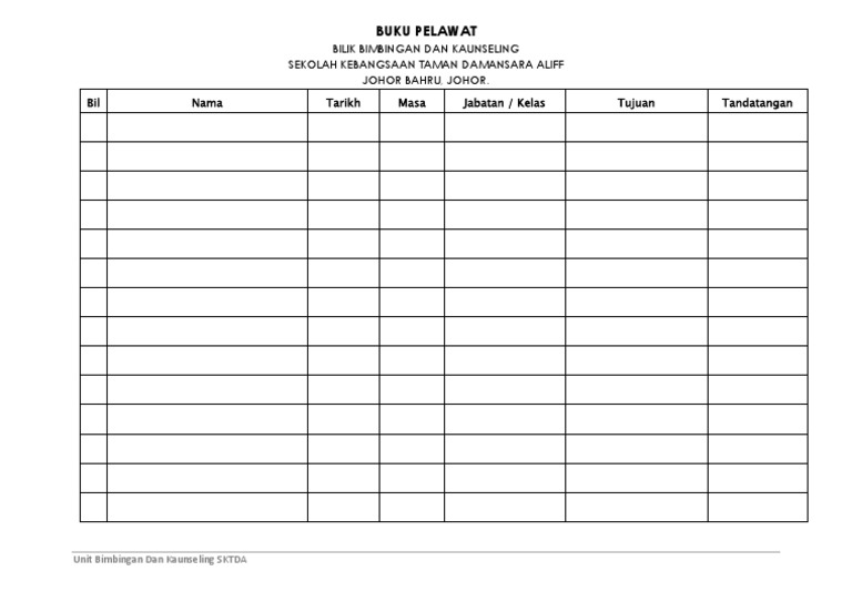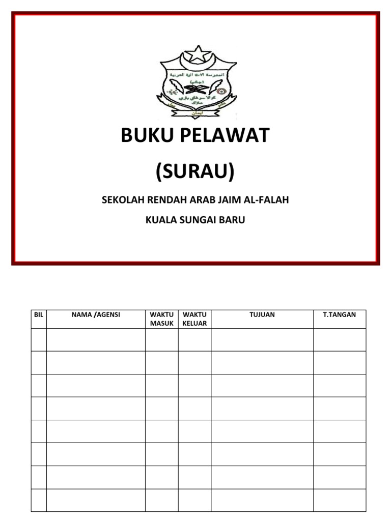 Buku Pelawat Masuk Sekolah Pusat Sumber Sekolah Lawatan Penanda Aras Plat Kenderaan Masa Tanda Tangan Catatan Masuk Idrisridho